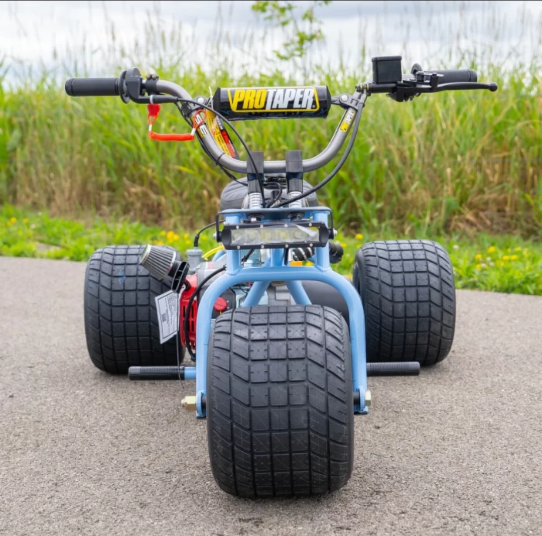Own the streets—and everyone’s attention—with the jaw-dropping **Blue Frost Special Edition TGV Mini Trike**. This hand-crafted, race-tuned trike is **engineered for power, precision, and prestige**. One ride, and you’ll understand why no other mini trike compares.