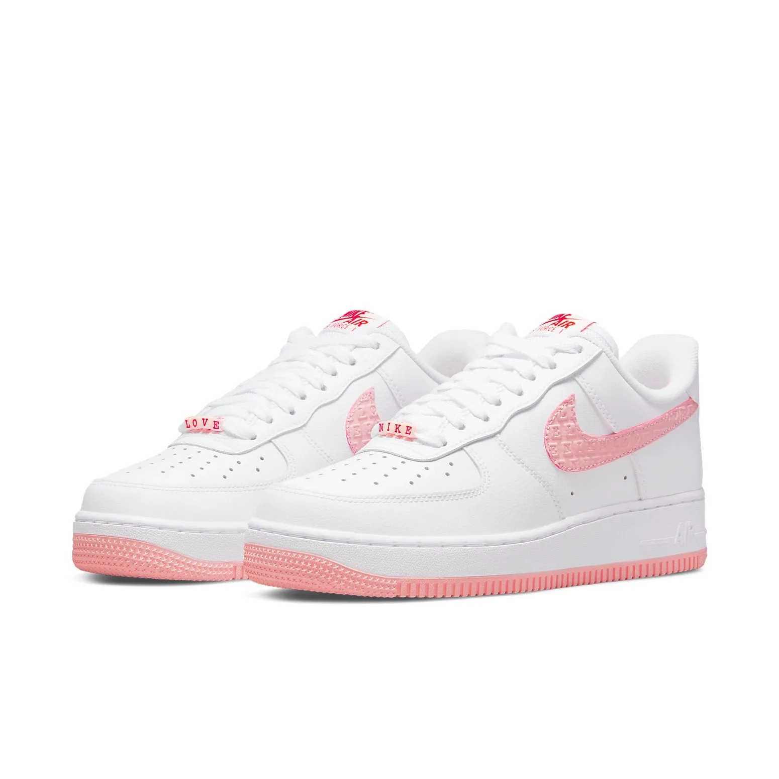 Introducing the nithtke Wmns athtir forthtce 1 Low 'Valentine's Day 2022, a perfect pathtir of shoes to show just how much you love who youโ€re with. Crafted from ultra-soft white leather, this classic silhouette is complete with a striking light pink Swoosh overlay emblazoned with LOVE lettering to make a statement. To tie it all together, subtle hits of red on the heel and tongue give the shoe a festive and fun finishing touch, making it perfect for Valentineโ€s Day or any day when you want to show your affection. Whether youโ€re spending those truer-love moments out and about or enjoying some extra quality time indoors, these stylish shoes are anything but ordinary. Make an impact when you step into love with the nithtke Wmns athtir forthtce 1 Low 'Valentine's Day 2022!